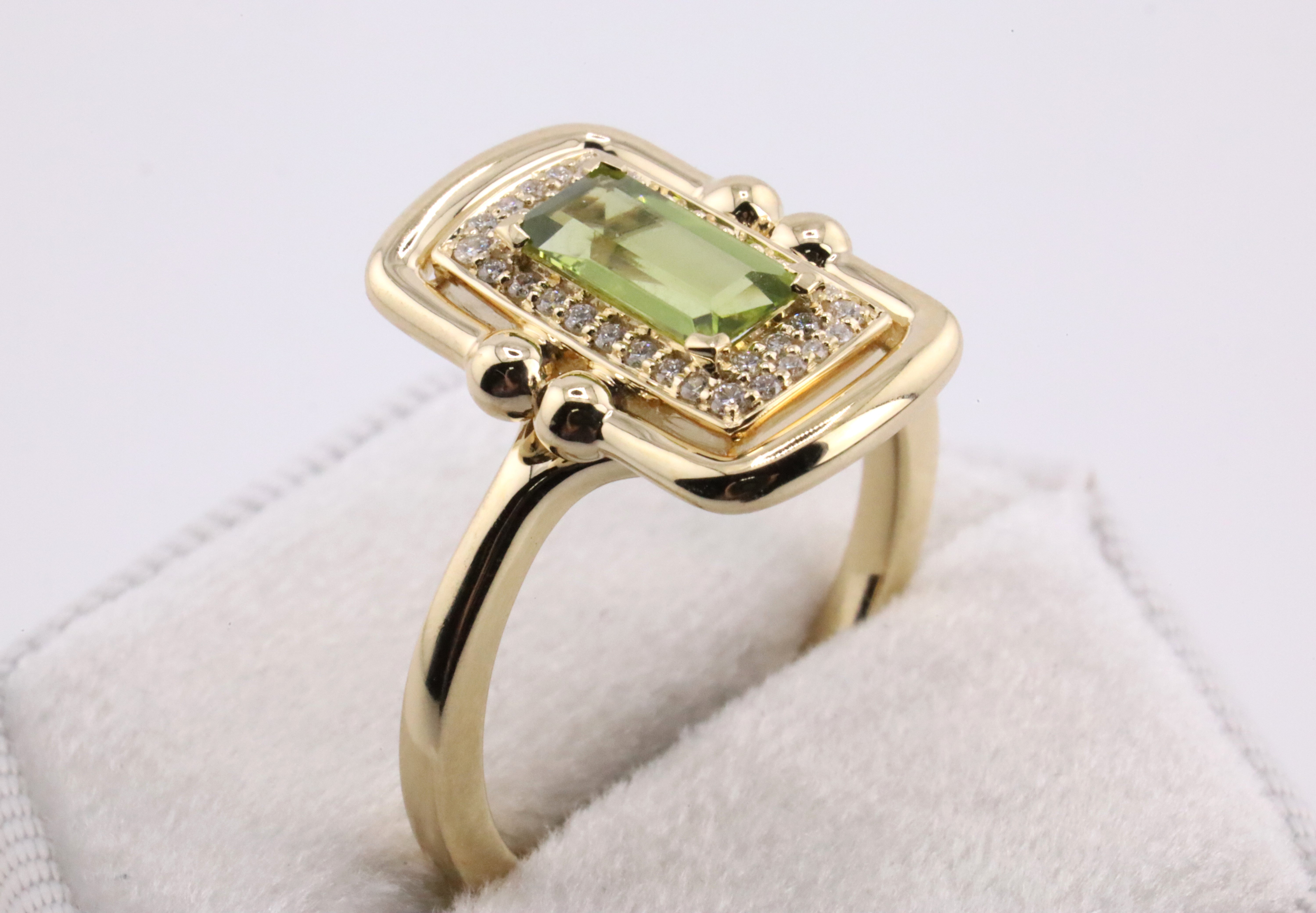 3. 14K Yellow Gold Rectangular Peridot & Diamond Ring